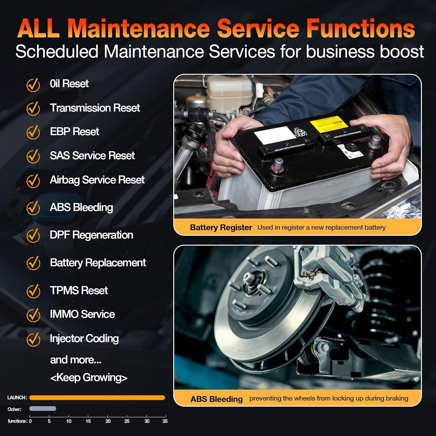 • 【50+ Wartungsfunktionen】 LAUNCH X431 obd2 Diagnosegerät auto für BMW,für MINI,für ROLLS ROYCE, Unterstützung 50+ allgemeine Reset-Funktion, wie Öllampen-Reset, elektrische Drosselklappenanpassung, SAS-Reset, ABS-Entlüftung, TPMS-Reset, DPF-Regeneration, EGR-Anpassung, Kühlmittelentlüftung, CBS-Reset, CAS-Reset, intelligente Geschwindigkeitsregelung,Initialisierte Telematikdienste,FlexRay-Initialisierung,DWA-Triggerung, Schiebedach-Initialisierung,Transportmodus,Regensensor-Initialisierung usw.