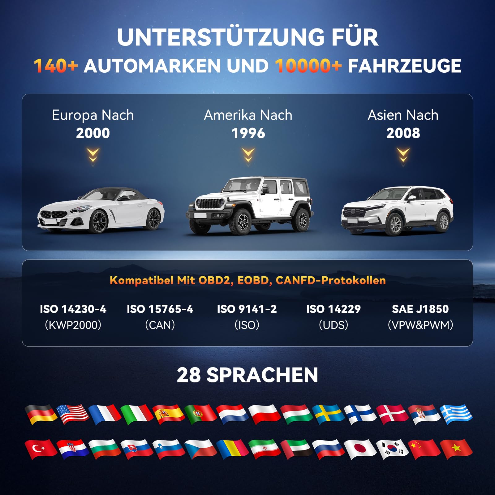 - 【Unterstützung Für 10000+ Automodelle】THINKSCAN 662 obd2 diagnosegerät Kompatibel mit den meisten US-Autos ab Baujahr 1996, bei EU-Autos ab Baujahr 2000 ,als auch bei Fahrzeugen, die in 2008 Asien gefertigt wurden. Unterstützt 140+ Automarken auf der ganzen Welt, funktioniert auf über 10000+ Automodellen.kompatibel mit OBD2, EOBD, CANFD-Protokoll.