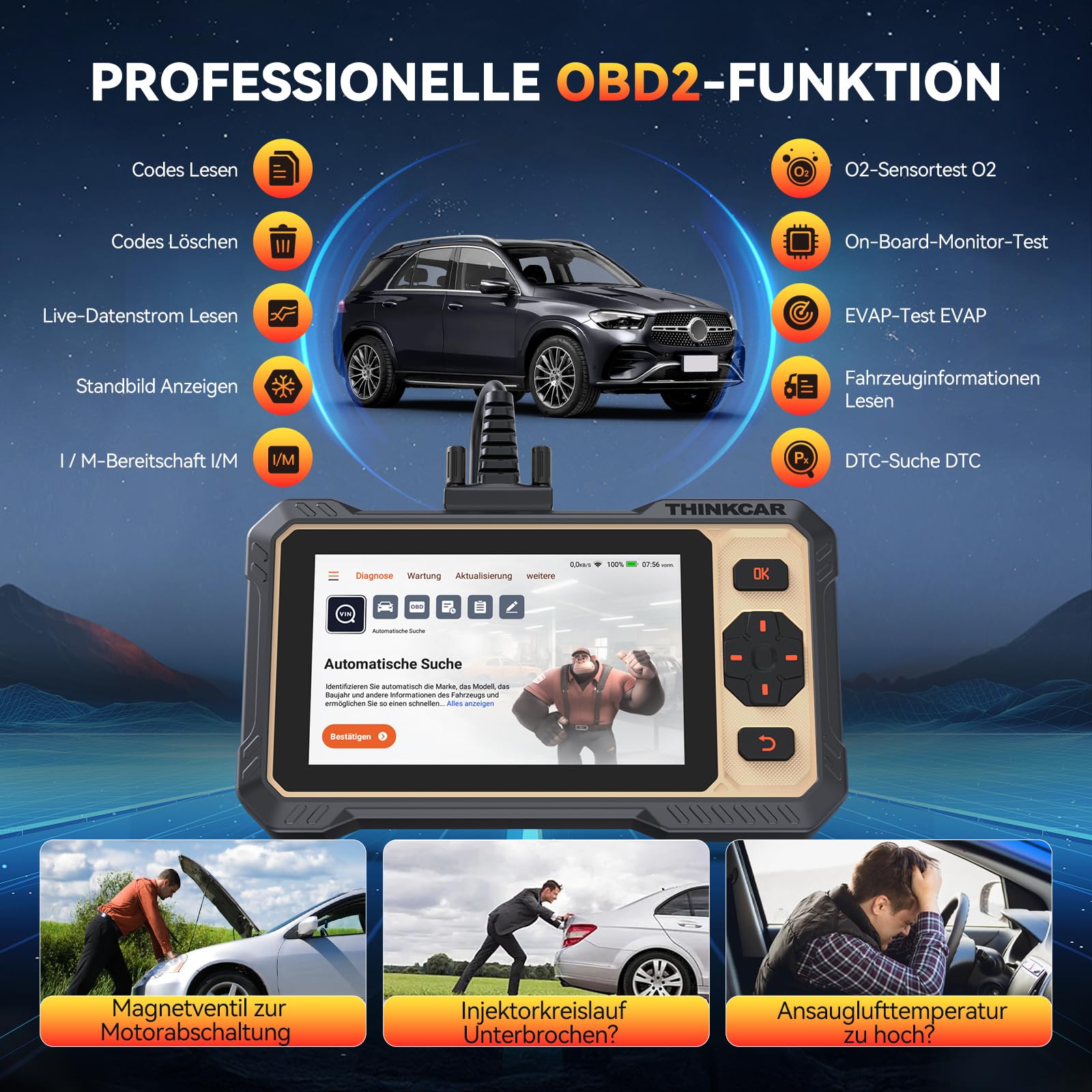 - 【Online-Service-Unterstützung】 24/7 professioneller Support THINKCAR ist immer für Sie da. Wenn Sie es brauchen, können Sie sich mit unseren geschulten Technikern über den In-App-Chat in Verbindung setzen. Sie können auch unseren offiziellen Kundendienst der Marke THINKCAR per E-Mail kontaktieren, wir haben auch ein professionelles Kundenteam, um Sie zu bedienen!